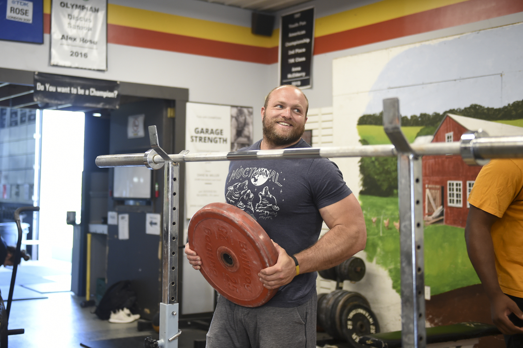 Schuylkill Valley grad Dane Miller, the Berks record holder in the shot put, has turned his Garage Strength gym into a launching pad for championship athletes. He is shown in May 2020. (LAUREN A. LITTLE — READING EAGLE)