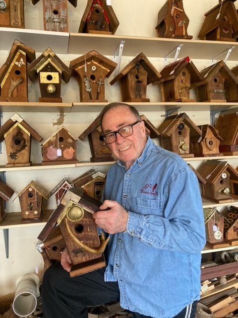 A retired manufacturing executive, Jones always loved woodworking and gardening and bought and installed a greenhouse to grow his own plants for the garden. In the winter months, he started to make custom furniture for the family. The amount of small leftover from woodworking amazed him. That’s when “JJ Woodcrafts” started making birdhouses from recycled materials.